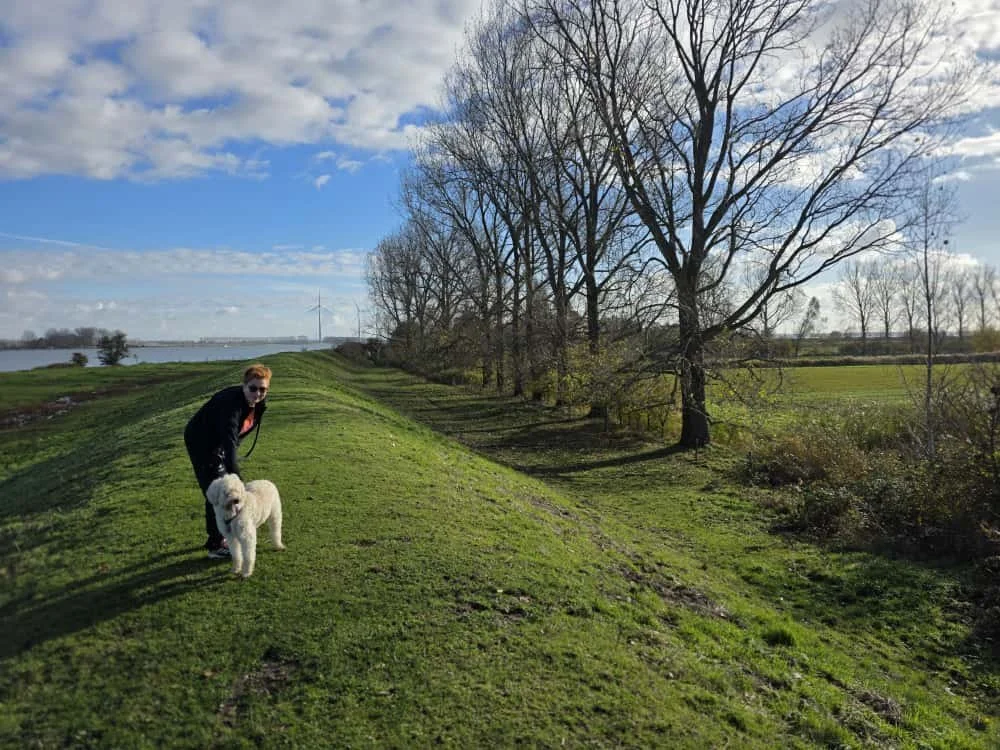 Toch is het weer tijd om wat online te gooien en aangezien ik dit weekend niet naar buiten ben geweest om te wandelen, gebruik ik dit moment om eens lekker her te beleven. Want vorige week zondag voelde als een klein cadeautje van het universum. Warm novemberweer, een eiland in herfst sferen, mama naast me én twee labradoodledames die met natte poten en modderplekken door het gras struinen.