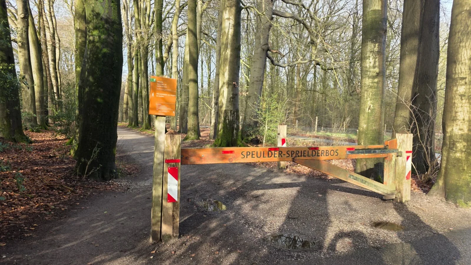 We liepen onder een mooie blauwe lucht, soms afgewisseld met wat wolken. Serieus, februari deed écht haar best. Een heerlijke winterzon scheen door de bomen en zorgde weer voor fotogenieke paadjes. We passeerden open bosweides en hier en daar volledig omgespitte stukken grond. Duidelijk het werk van wilde zwijnen die hier ‘s nachts hun buffet bij elkaar proberen te scharrelen.